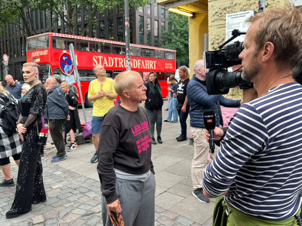 Julia Staron, Vorständin lebendiges Kulturerbe St. Pauli, spricht über die Bedeutung des Projekts für den Stadtteil, über sinnstiftende Wissensvermittlung für Anwohnende und Gäst*innen, sowie über das für die Finanzierung notwendige Crowdfunding.